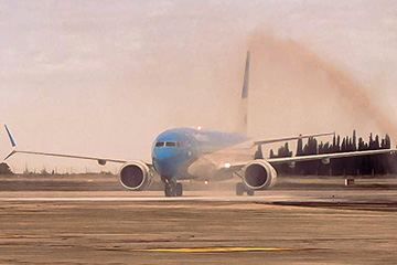 Aerolíneas Argentinas dio inicio a su campaña "Llevamos Campeones" con la partida del vuelo chárter que traslada al cuerpo técnico y parte del plantel del equipo argentino de fútbol rumbo a los EE. UU., la sede principal de la próxima Copa América. |