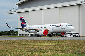 El primer A320neo para el LATAM Airlines Group salió de la línea de montaje final de Airbus en Toulouse, después de que fueran instalados los motores PW1100-JM Pure Power Pratt & Whitney, revelando la nueva librea de la compañía en colores coral e índigo. |