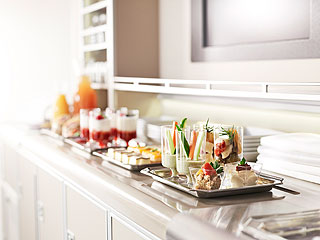 Durante el vuelo, los clientes de Primera Clase y de Clase Ejecutiva pueden optar por nuevas opciones en el menú que se servirán en una vajilla más moderna, junto con cubiertos, servilletas y manteles nuevos. Además, los clientes de Primera Clase recibirán otros productos especialmente diseñados, incluyendo nuevos mantelitos individuales texturizados, aros de servilleta y vasos de agua, y un amuse bouche (un pequeño hors d'oeuvre).