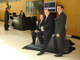 | American Airlines presentó a la prensa su nueva Business Class 767-300 con asientos completamente motorizados y reclinables en una configuración 2-2-2 con unidades personales de entretenimiento con audio y video a la carta, iluminación de alta tecnología y compartimentos para equipaje ergonométricos. La Exhibición de los asientos fue en tierra, en el lobby del hotel Hilton de Puerto Madero y viajó especialmente para compartir el coktail con los periodistas la señora Martha Pantín, Director Corporate Communications de la compañía, y junto a Doménico Matinata, Gerente de Ventas Regional de American Airlines , Sergio Hurtado, Director para Argentina, Héctor Perícoli Gerente de Comunicaciones, Florencia Martinez Baxter, E-Commerce Executive-Argentina y Carlos Harrington, Sales Manager, explicaron las bondades de la nueva clase ejecutiva.