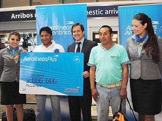 El pasajero número 9 millones arribo hoy al aeroparque metropolitano Jorge Newbery en el vuelo AR 2463, procedente de Salta, que aterrizó a la 15:20 hs y se trata de Hernán Guanuco, un joven trabajador minero de 27 años que volaba con destino final Comodoro Rivadavia.
