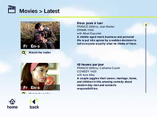Entre sus destacados servicios se encuentra el video individual a la carta disponible para todas las clases. Incluye presentaciones exclusivas e inéditas, una selección de 85 películas, algunas presentadas en 9 idiomas (alemán, inglés, chino, coreano, español, francés, italiano, portugués, japonés) y películas en su idioma original (tamil, chino, japonés, portugués),así como las mejores series de televisión del momento. A través de l´Equipe TV se transmite toda la información actualizada sobre temas de economía, cultura, deportes, entre otros.
