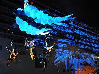 Luego de la ceremonia de bautismo, el original anfiteatro formado por ambos barcos reposando en el dique Ponte Doria fue escenario del concierto de Giorgia, una de las más talentosas cantantes italianas de la historia, seguida de un espectacular show que sumió a toda la ciudad en un ambiente de luces, música y fuegos artificiales.