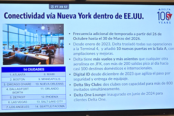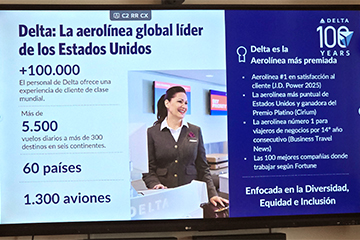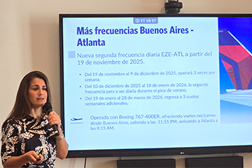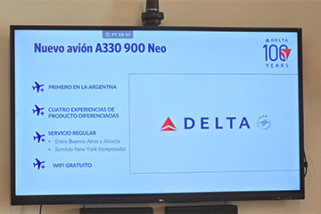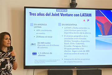 Con una presentación en un importante hotel de Recoleta, Delta Airlines celebró su 100º aniversario. En un desayuno para medios especializados resaltó el éxito de su Joint Venture (JV) con LATAM Airlines y aprovechó para anunciar una importante expansión de sus operaciones en Argentina. Gabriela Cioccia, Gerente de Ventas de Delta para Argentina anunció un aumento en las frecuencias de vuelos, la introducción de una nueva generación de aeronaves y un renovado enfoque estratégico en el mercado aerocomercial argentino.