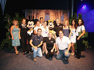 (De izquierda a derecha) De pie: Dessie Dulakis(WDW), Tia Penha (Tia Penha Turismo), Mickey Mouse, Izabel Luz (Intercultural), Marianna Silva (Personal RGE Tours), Paola Gugelmin (Gugelmin Turismo), Minnie Mouse, Gil Miranda (Magic Way), Thais Passuelo (Sonhotur), Bruna Castro (Cardinal), Tereza Reis (Personal RGE Tours). De rodillas: Lino Paiva (Dauras Turismo), Ivete Miranda (Magic Way) y Benjamin Castro (Cardinal)