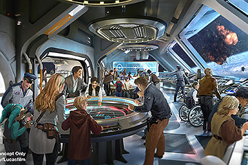 La totalmente inmersiva tierra incluirá dos asombrosas atracciones que permiten a los visitantes tener el control de sus experiencias. Una atracción pondrá a los visitantes en medio de una batalla entre la Primera Orden y la Resistencia, dentro de un Star Destroyer. En la segunda atracción, los visitantes tendrán la oportunidad de volar el Millennium Falcon, la nave más famosa de la galaxia.