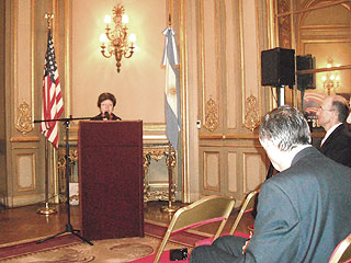 La embajadora de los Estados Unidos de America, Vilma Martínez, quien fue la primera expositora.
