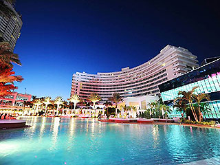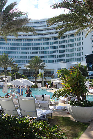 El Hotel Fontainebleau con sus 37 plantas y 450 habitaciones mostró todo su esplendor en el reciente Pow Wow albergando a numerosas delegaciones, entre ellas, la argentina. Recientemente remodelado, sus espaciosas suites de diseño moderno están equipadas con toda la tecnología. Desde PC de escritorio Mac -con amplio monitor de cristal líquido- hasta teléfono inalámbrico y pantallas LCD de 40’ en la habitación y 14’ en el baño, con señal de TV por cable HD High-Definition Interfaz multimedia de alta definición de audio y vídeo digital. Erigido en un sitio privilegiado de Miami Beach está a minutos de los principales centros de compras, vida nocturna y ofertas gastronómicas. Su complejo de piscinas con sus tradicionales reposeras y sombrillas blancas, parece extenderse hacia la playa solo dividida por la pasarela que concatena los hoteles de la costa y una línea de palmeras. Por las noches la masiva concurrencia a la discoteca evidencia que atraviesa su momento de esplendor como el lugar bailable de moda. Este panorama cierra su círculo con el esmerado trato del personal y la muy buena calidad de sus servicios. El Hotel Fontainebleau ocupa un terreno de 8,9 hectáreas en la primera línea de la playa más lujosa de Miami Beach. Cuenta con restaurantes y bares para todos los gustos, locales comerciales, SPA, gimnasio, Internet con la PC de la hitación o Wi Fi 13,95 USD por 24 horas y parking valet US$ 32 por día.