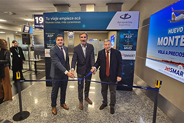 Con el vuelo inaugural de JetSmart de Buenos Aires (AEP) a Montevideo (MVD) quedó establecido el puente aéreo que une a las capitales de ambos países. El corte de cinta, a cargo de Gonzalo Pérez Corral, gerente general de JetSmart Argentina, Carlos Enciso Christiansen, embajador de Uruguay en Argentina y Daniel Ketchibachian, CEO de Aeropuertos Argentina, se formalizó en Aeroparque.