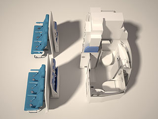 Un uso más eficiente del espacio en la parte trasera de la cabina permite incorporar dos baños más y una cocina con las siguientes ventajas: