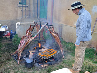 Varias horas antes había desembarcado en el lugar una avanzada logística encargada de los preparativos para la recepción en la que incluía baquianos con la especial misión de hacer a fuego lento cinco corderos patagónicos para la cena.