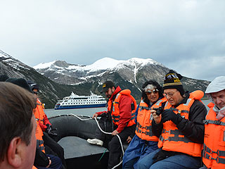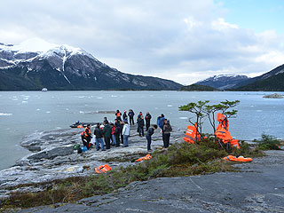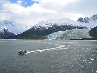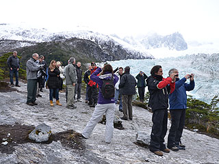 En el único día completo de hospedaje en el barco, luego de un variado y sustancioso desayuno americano, el contingente se ajustó los chalecos salvavidas y desde la primera cubierta -la más cercana a la línea de flotación- ordenadamente abordó varios Zodiac (gomones de envergadura) para trasladarse hacía el brazo noroeste del canal hasta el Glaciar Pía, ubicado en la bahía homónima, donde solo se puede llegar por mar o aire.