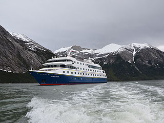 Ya en Ushuaia el misterio empezó a develarse cuando luego de cumplir con los trámites migratorios, en el puerto aguardaba el Crucero de Expedición Vía Australis para el embarque. Un barco chileno construido en Valparaíso en el 2005 al mejor estilo de los europeos, con 64 cabinas para 136 pasajeros, con 71,83 mts. de eslora y 13,4 mts. de manga sirvió de hospedaje durante dos noches navegando por los canales fueguinos en aguas del canal de Beagle, -descubierto por el capitán Fitz Roy- costa Sur de Tierra del Fuego.
