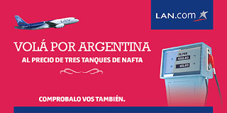 LAN presenta una nueva campaña publicitaria basada en el concepto "Viajá en avión al precio de…" que plantea comparaciones entre el valor de viajar en avión y distintos elementos de consumo cotidiano. El objetivo es instalar en el público la accesibilidad de viajar en avión por Argentina.