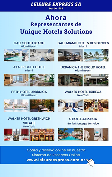 Claudio Fernández de vasta trayectoria en la Industria turística fue nombrado representante de Unique Hotels Solutions grupo de marketing hotelero -con base en Miami. María Elena Kaldani, cofundadora y directora, viajó especialmente a Buenos Aires a ponerlo en funciones como nuevo representante para Argentina y Uruguay. El experimentado Claudio Fernández presidente de Leisure Express, tendrá como objetivo reactivar y potenciar el mercado de Argentina, promoviendo la difusión de la marca entre agencias y operadores turísticos.