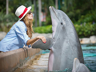 Haciendo una pausa en la campaña de promoción de su ultimo sencillo Boys will be Boys, la superestrella mexicana Paulina Rubio visitó durante el fin de semana SeaWorld Orlando. Allí pudo disfrutar encuentros con varios animales, incluyendo a este precioso delfín nariz de botella del Atlántico, quien le dio un besito de bienvenida. Para conocer más sobre este parque, visita SeaWorldOrlando.com.