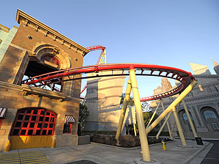 Como una bala pasaras el teatro de los Blue Man Group hacia Universal CityWalk, serás lanzado bajo tierra y emergerás desde el abismo cerca de la entrada de Universal Studios.