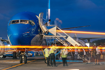 Aerolíneas Argentinas dio inicio a su campaña "Llevamos Campeones" con la partida del vuelo chárter que traslada al cuerpo técnico y parte del plantel del equipo argentino de fútbol rumbo a los EE. UU., la sede principal de la próxima Copa América. |