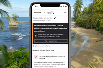 American recientemente lanzó una nueva herramienta para viajes, operada por Sherpa, proporcionándole a los clientes una experiencia de viaje optimizada. A través de la guía de viajes Sherpa, ahora disponible en español e inglés, los clientes pueden conocer los requisitos de viaje más recientes sobre el coronavirus (COVID-19). |