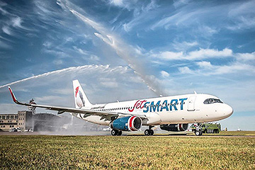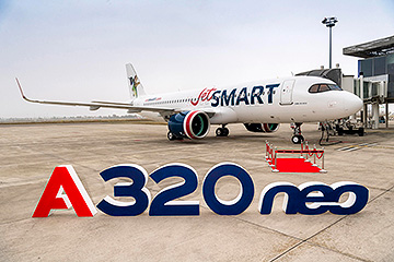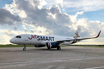 JetSMART, la aerolínea sudamericana de ultra bajo coste basada en Chile, propiedad de Indigo Partners, acaba de recibir su primer A320neo en régimen de arrendamiento financiero con SMBC. Este avión de pasillo único de bajo consumo de combustible ayudará a reducir la huella ambiental de la aerolínea. |