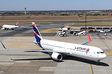 Aterrizó en el Aeropuerto Internacional O. R. Tambo, Johannesburgo, el avión del primer vuelo de LATAM Airlines con destino a Sudáfrica. El vuelo JJ8162 fue operado por un Boeing 767 con 191 asientos en Clase Económica y 30 en Premium Business. La nueva rutaamplia la conectividad ofrecida a los pasajeros y convierte a LATAM en la única aerolínea latinoamericana en conectar su región con un país del continente africano con vuelo propio. |
