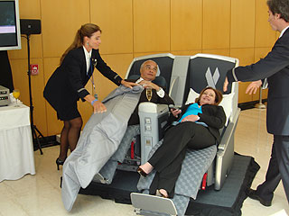 | American Airlines presentó a la prensa su nueva Business Class 767-300 con asientos completamente motorizados y reclinables en una configuración 2-2-2 con unidades personales de entretenimiento con audio y video a la carta, iluminación de alta tecnología y compartimentos para equipaje ergonométricos. La Exhibición de los asientos fue en tierra, en el lobby del hotel Hilton de Puerto Madero y viajó especialmente para compartir el coktail con los periodistas la señora Martha Pantín, Director Corporate Communications de la compañía, y junto a Doménico Matinata, Gerente de Ventas Regional de American Airlines , Sergio Hurtado, Director para Argentina, Héctor Perícoli Gerente de Comunicaciones, Florencia Martinez Baxter, E-Commerce Executive-Argentina y Carlos Harrington, Sales Manager, explicaron las bondades de la nueva clase ejecutiva.