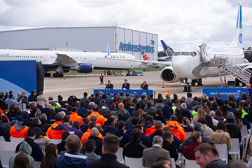 Durante el acto, Ceriani recordó que "en 2020 sostuvimos que los objetivos de Aerolíneas Argentinas eran tres; la fusión entre Aerolíneas y Austral, el desarrollo del MRO (Taller de Mantenimiento) y el desarrollo de la carga aérea". "Con la entrada de este avión consolidamos la unidad de negocios de Aerolíneas Argentinas", remarcó.