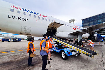 Este acuerdo firmado con la empresa JetSMART, que se inició durante el mes de enero, consiste en la provisión de señalización, colocación de escaleras, alquiler de generadores, movimientos de equipajes y pasajeros, y remolque de aeronaves, entre otras tareas.