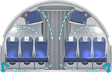 ● Sistemas de ventilación a bordo de las aeronaves que circulan continuamente y refrescan el suministro de aire (Filtros HEPA).