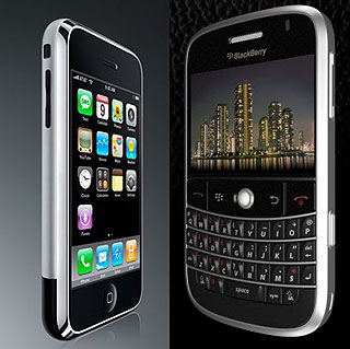 | La compañía canadiense Research In Motion (RIM) presentó un nuevo BlackBerry, denominado Bold, que utiliza la tercer generación de la tecnología móvil GSM y con el que intenta acercarse a la clientela del iPhone de Apple.