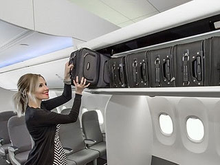 Se acabaron las disputas entre los pasajeros por el escaso espacio que frecen los armarios para el equipaje de mano en los aviones. Boeing nos presenta la solución definitiva, que ha bautizado con el nombre de Space Bins: en estas taquillas personalizadas el pasajero se las tendrá que arreglar para introducir todas sus pertenencias sin tener que robarle el espacio a nadie.