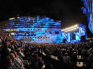 Luego de la ceremonia de bautismo, el original anfiteatro formado por ambos barcos reposando en el dique Ponte Doria fue escenario del concierto de Giorgia, una de las más talentosas cantantes italianas de la historia, seguida de un espectacular show que sumió a toda la ciudad en un ambiente de luces, música y fuegos artificiales.