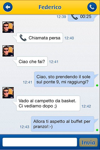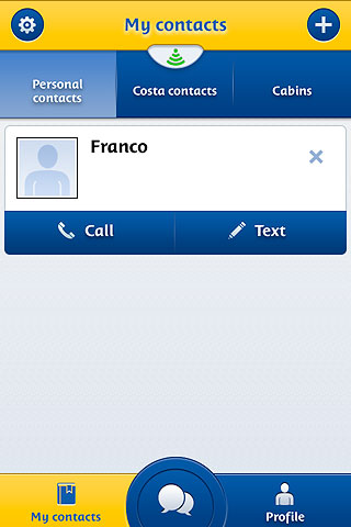 Una vez que te hayas registrado, MyCosta Mobile está lista para usar: podés socializar con otros Huéspedes y estar en contacto por teléfono o chat con quien quieras, así como también contactar una cabina o cualquiera de los servicios a bordo, por ejemplo restaurantes, spa, oficina de excursiones y muchos otros.