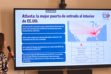 Con una presentación en un importante hotel de Recoleta, Delta Airlines celebró su 100º aniversario. En un desayuno para medios especializados resaltó el éxito de su Joint Venture (JV) con LATAM Airlines y aprovechó para anunciar una importante expansión de sus operaciones en Argentina. Gabriela Cioccia, Gerente de Ventas de Delta para Argentina anunció un aumento en las frecuencias de vuelos, la introducción de una nueva generación de aeronaves y un renovado enfoque estratégico en el mercado aerocomercial argentino.