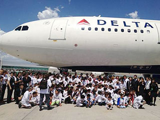 "El martes 27 de noviembre, se ha realizado nuevamente el DELTA FANTASY FLIGHT, en donde 180 chicos tuvieron la oportunidad de conocer un avión por primera vez.