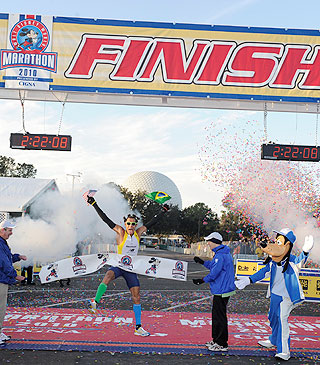 El corredor brasilero Adriano Bastos cruzó primero la línea de llegada de su séptimo “Walt Disney World Marathon”. Bastos, de 31 años, de Sao Paulo, Brasil, obtuvo un tiempo ganador de 2:20:08. El año pasado su marcación total fue de 2:20:37. Este año, además de competir con 24,000 corredores, Bastos tuvo que enfrentar las bajas temperaturas que azotan a la Florida Central.