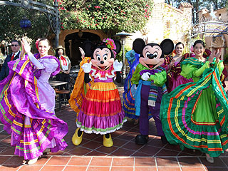 Luciendo sus trajes de fiesta, Mickey Mouse y Minnie Mouse estubieron acompañados por otros personajes: Los Tres Caballeros, Donald Duck, José Carioca y Panchito.
