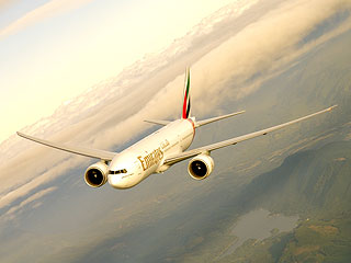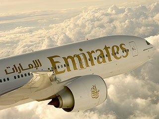 Emirates opera diariamente la ruta Buenos Aires-Dubai, con escala en Rio de Janeiro, con un Boeing 777-200LR dividido en tres clases: 8 suites privadas en Primera Clase, 42 asientos enClase Ejecutiva que se convierten en cama y una espaciosa cabina de 216 asientos en Económica.