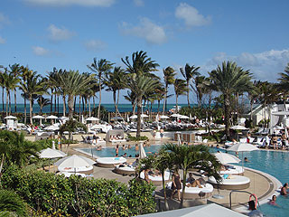 El Hotel Fontainebleau con sus 37 plantas y 450 habitaciones mostró todo su esplendor en el reciente Pow Wow albergando a numerosas delegaciones, entre ellas, la argentina. Recientemente remodelado, sus espaciosas suites de diseño moderno están equipadas con toda la tecnología. Desde PC de escritorio Mac -con amplio monitor de cristal líquido- hasta teléfono inalámbrico y pantallas LCD de 40’ en la habitación y 14’ en el baño, con señal de TV por cable HD High-Definition Interfaz multimedia de alta definición de audio y vídeo digital. Erigido en un sitio privilegiado de Miami Beach está a minutos de los principales centros de compras, vida nocturna y ofertas gastronómicas. Su complejo de piscinas con sus tradicionales reposeras y sombrillas blancas, parece extenderse hacia la playa solo dividida por la pasarela que concatena los hoteles de la costa y una línea de palmeras. Por las noches la masiva concurrencia a la discoteca evidencia que atraviesa su momento de esplendor como el lugar bailable de moda. Este panorama cierra su círculo con el esmerado trato del personal y la muy buena calidad de sus servicios. El Hotel Fontainebleau ocupa un terreno de 8,9 hectáreas en la primera línea de la playa más lujosa de Miami Beach. Cuenta con restaurantes y bares para todos los gustos, locales comerciales, SPA, gimnasio, Internet con la PC de la hitación o Wi Fi 13,95 USD por 24 horas y parking valet US$ 32 por día.