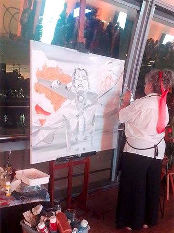 Con show de tango incluido, hubo degustación de vinos de Bodegas Del Fin Del Mundo y Espacio Arte Vivo difundió los Talleres y obras de la artista plástica Claudia Cogo que creó durante en 3 horas, sobre un lienzo de 120 x 100 una obra conmemorativa para la ocasión reflejando la hermandad de ambos paises.