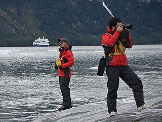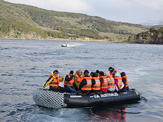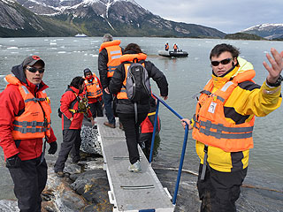 En el único día completo de hospedaje en el barco, luego de un variado y sustancioso desayuno americano, el contingente se ajustó los chalecos salvavidas y desde la primera cubierta -la más cercana a la línea de flotación- ordenadamente abordó varios Zodiac (gomones de envergadura) para trasladarse hacía el brazo noroeste del canal hasta el Glaciar Pía, ubicado en la bahía homónima, donde solo se puede llegar por mar o aire.