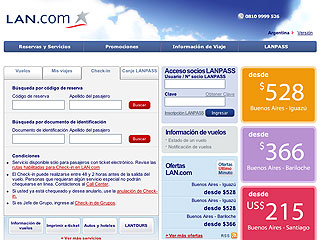 Además, 350.000 personas al mes visitan el sitio de LAN.com. Por día, son 11.500 usuarios los que se conectan para realizar todo lo referido al viaje: consultas comerciales, información sobre vuelos, ofertas de último minuto, promociones por ruta, beneficios LANPASS o Check-In Web; siempre con la garantía de estar navegando en un sitio seguro que cumple con los más altos estándares y certificaciones internacionales de seguridad.