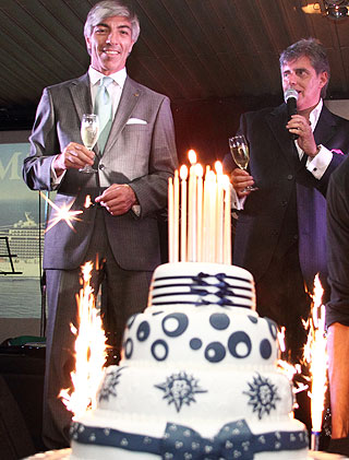 El humorista Rico, protagonista del Crucero del Humor, dio un show especial basado en imitaciones donde se destacó una parodia de “La Abuela” que interpreta Antonio Gasalla y del ex presidente Fernando de la Rua. La banda del Crucero de la Música puso el condimento festivo durante gran parte de la fiesta a una nutrida concurrencia. Un desfile de modas sirvió como marco para la presentación del Crucero Fashion, otro de los nuevos productos de MSC, con reconocidas marcas y colecciones. El cierre de la noche quedó a cargo de la banda, que entusiasmó a los presentes a bailar con música de todos los géneros y carnaval carioca.