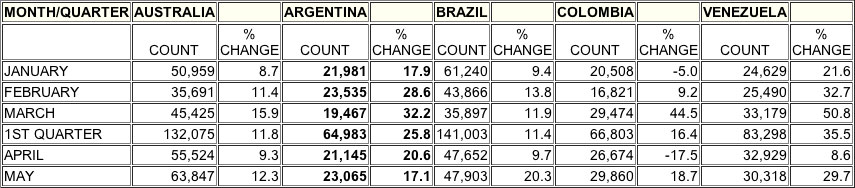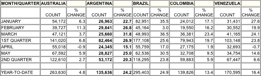 2007 Table C - Section 6: Australia, Argentina, Brazil, Colombia, Venezuela