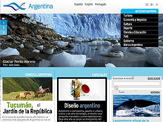 El sitio oficial del Gobierno argentino -desarrollado por la Secretaría de Medios de la Nación - fue lanzado en diciembre de 2007 y promocionado como "la principal vidriera internacional" del país.
